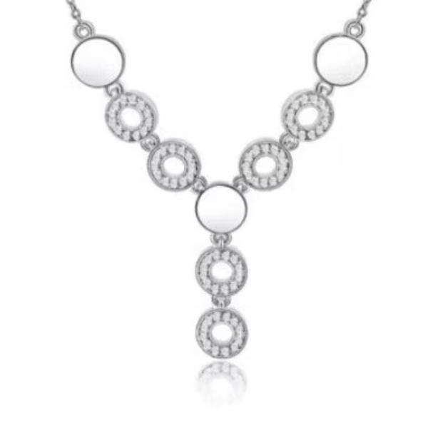 Set de bijuterii pentru fete, compus din colier, cercei si inel, finisaj argintiu, ideal pentru tinute jucause sau cadouri speciale.